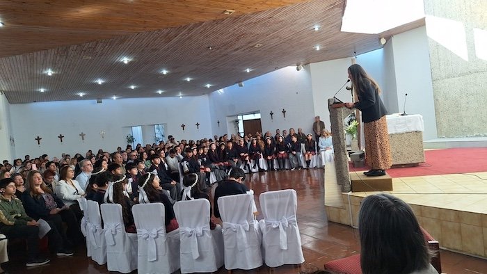 Fue una celebración muy emotiva y colmada de fe y ternura, en la que las familias acompañaron a sus hijos e hijas en este paso tan importante en su camino cristiano sobre todo en un colegio como el nuestro cuya razón de ser tiene que ver con la vida compartida desde la fe.