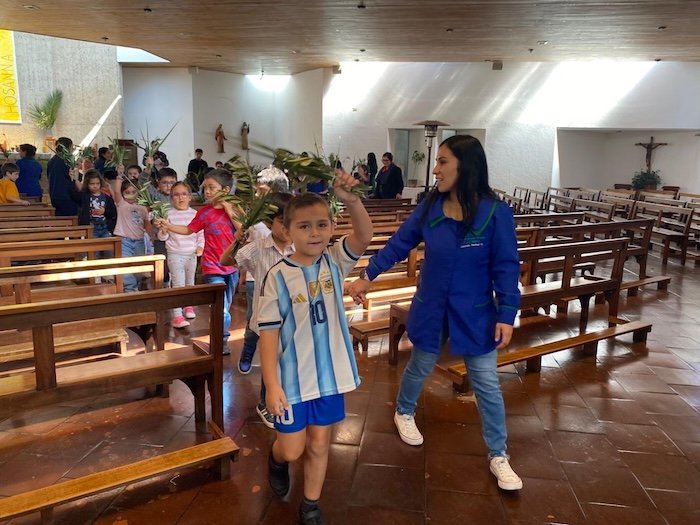 La bendición de los ramos, el acompañamiento del coro —con una destacada participación de estudiantes— y la disposición de los docentes, incluyendo a quienes se integran recientemente al colegio, contribuyeron que fuera una celebración compartida y muy al estilo SS.CC.