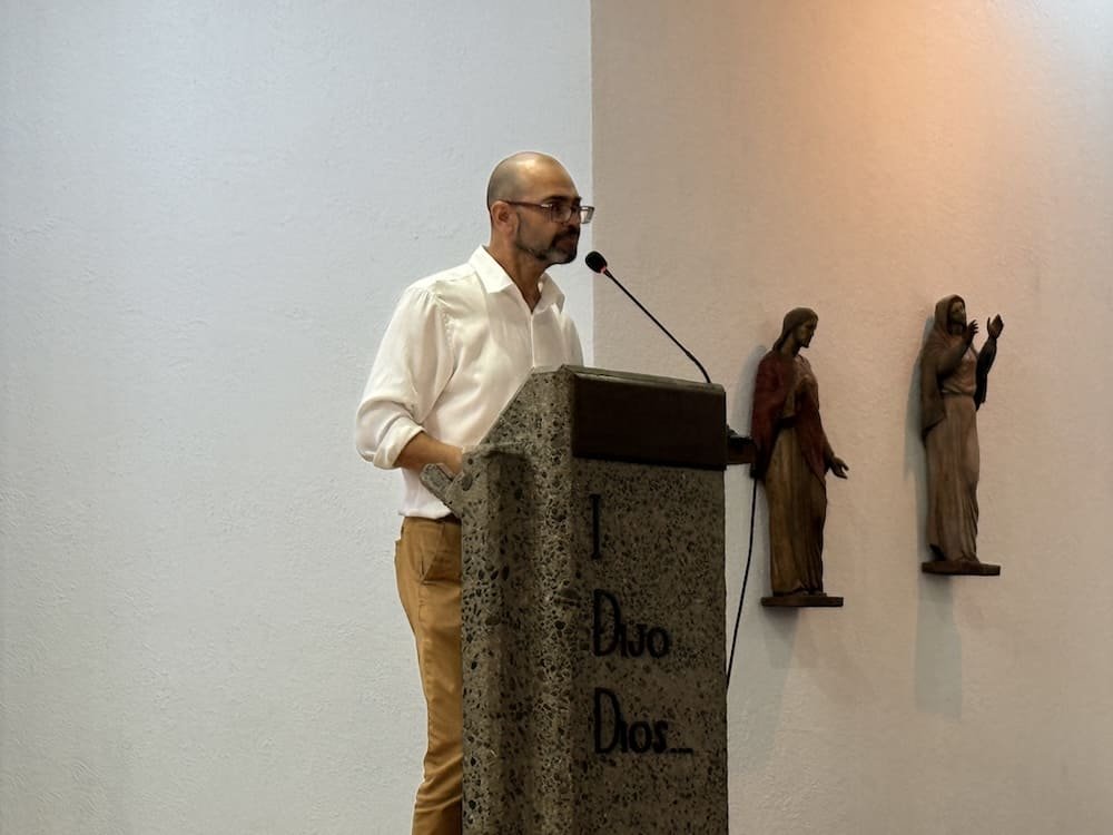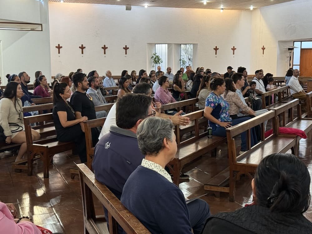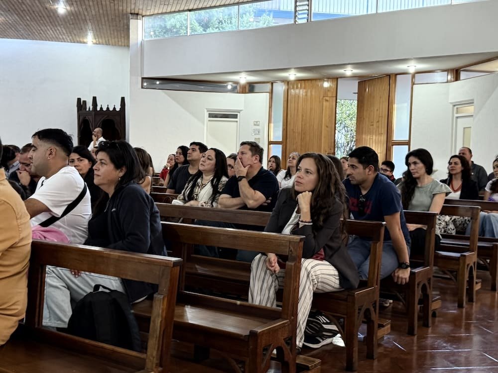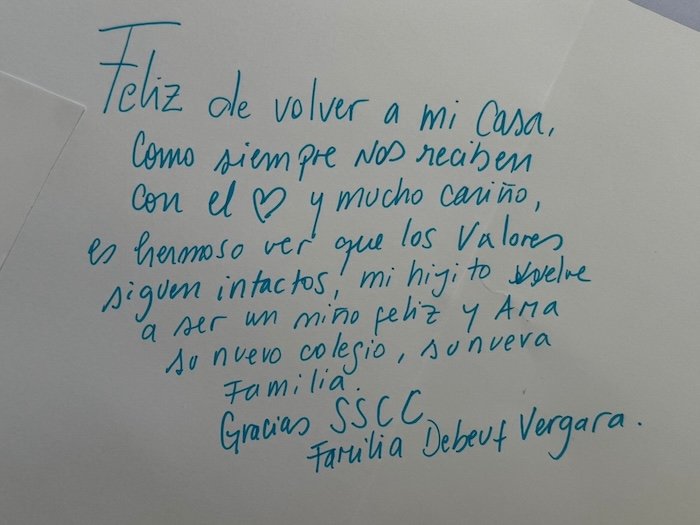 El director, Benjamín Castro, dirigió un mensaje y comenzó entregándoles un saludo lleno de alegría y esperanza: “Para nosotros es una verdadera alegría darles la bienvenida a este colegio que, más que un lugar de estudio, busca ser una comunidad que educa, acompaña y forma personas. Hoy ustedes comienzan un camino junto a nosotros. Sus hijos e hijas no solo ingresan a un establecimiento educacional; se incorporan a una comunidad inspirada en la espiritualidad de los Sagrados Corazones, que busca educar desde el evangelio, promoviendo una formación integral que cultiva la mente, el corazón y el espíritu. Nuestro mayor deseo es que sus hijos e hijas puedan decir, con el paso del tiempo, que en este colegio aprendieron, crecieron y fueron felices”.