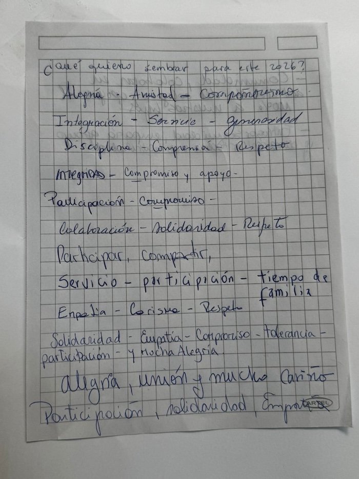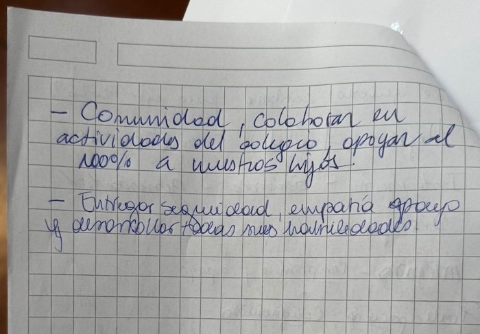 También hubo espacio para que en grupos las familias pudieran contar qué es lo que cada uno ofrece para este proceso, dejando por escrito en un panel los deseos para sus hijos e hijas para estos años de permanencia en el colegio (ver fotografías).
